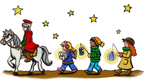 Treffpunkt am 11.11.25 um 16:30 Uhr an der Ev. Kita Kinderarche (Th. Neubauer Str. 2); Lampionumzug zur katholischen Kirche mit Martinsspiel in der katholischen Kirche St. Mariä Himmelfahrt. Bratwurst und Kinderpunsch vor der katholischen Kirche (Vierradener Platz).